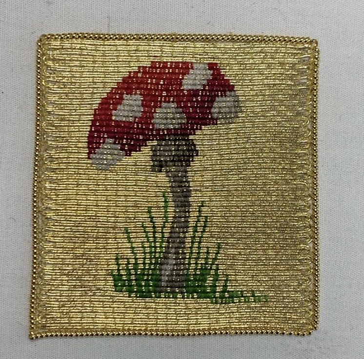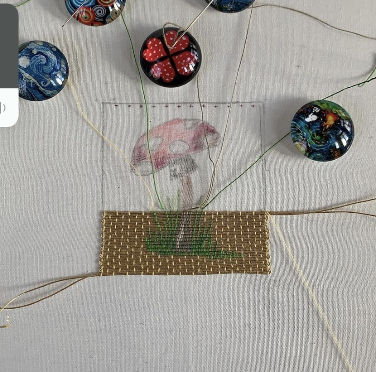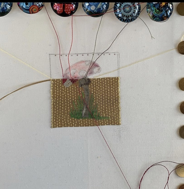 And then I was introduced to this piece – I fell in love with this beautiful little toadstool which was designed by Mandy Ewing. I HAD to stitch it and include it in my goldwork journal. This piece was a real challenge for me – understanding the shading of the piece and interpreting into the design and managing parked threads.