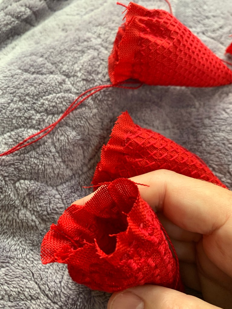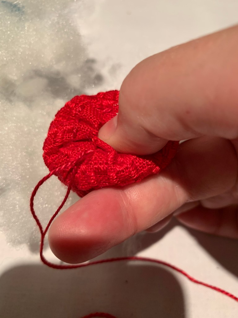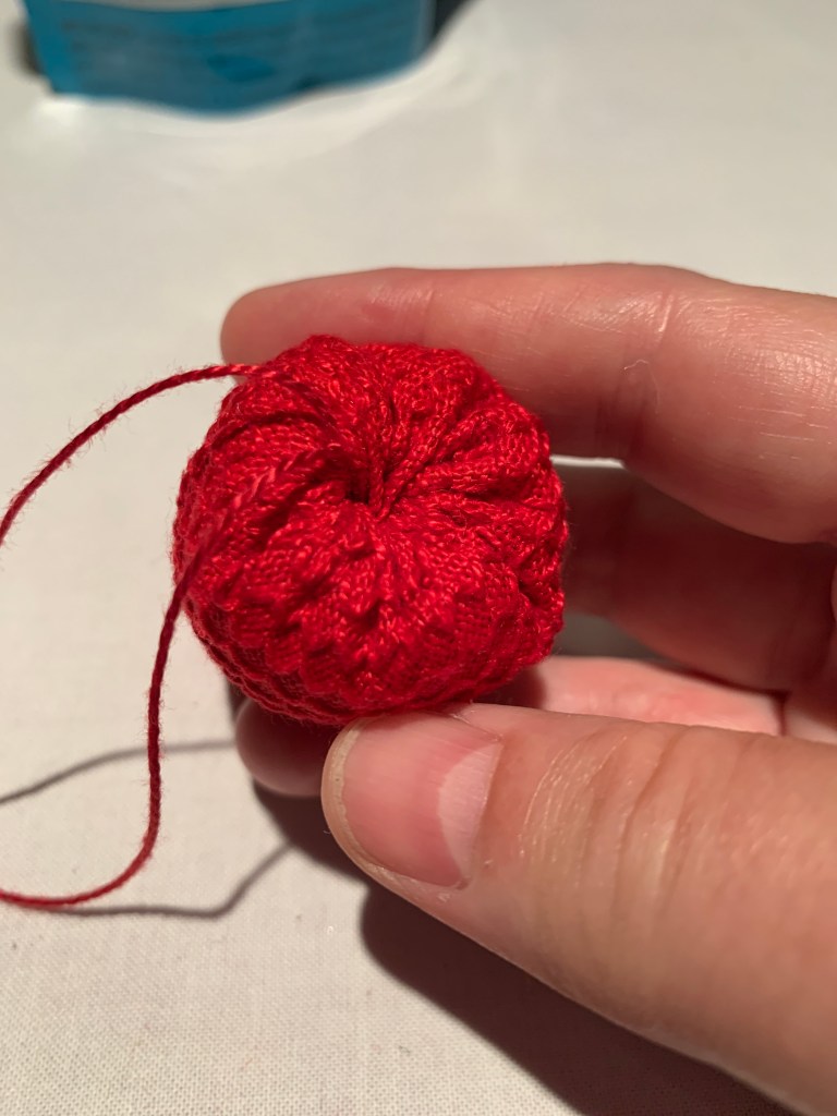 To make sure the raw edges are extra secure and so that none of the stuffing has a chance to escape, I stitched the tops closed using a ladder stitch. These stitches will be covered by the strawberry leaf tops.
