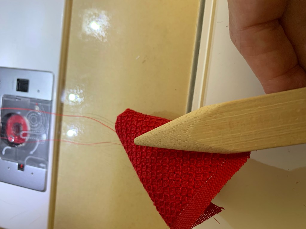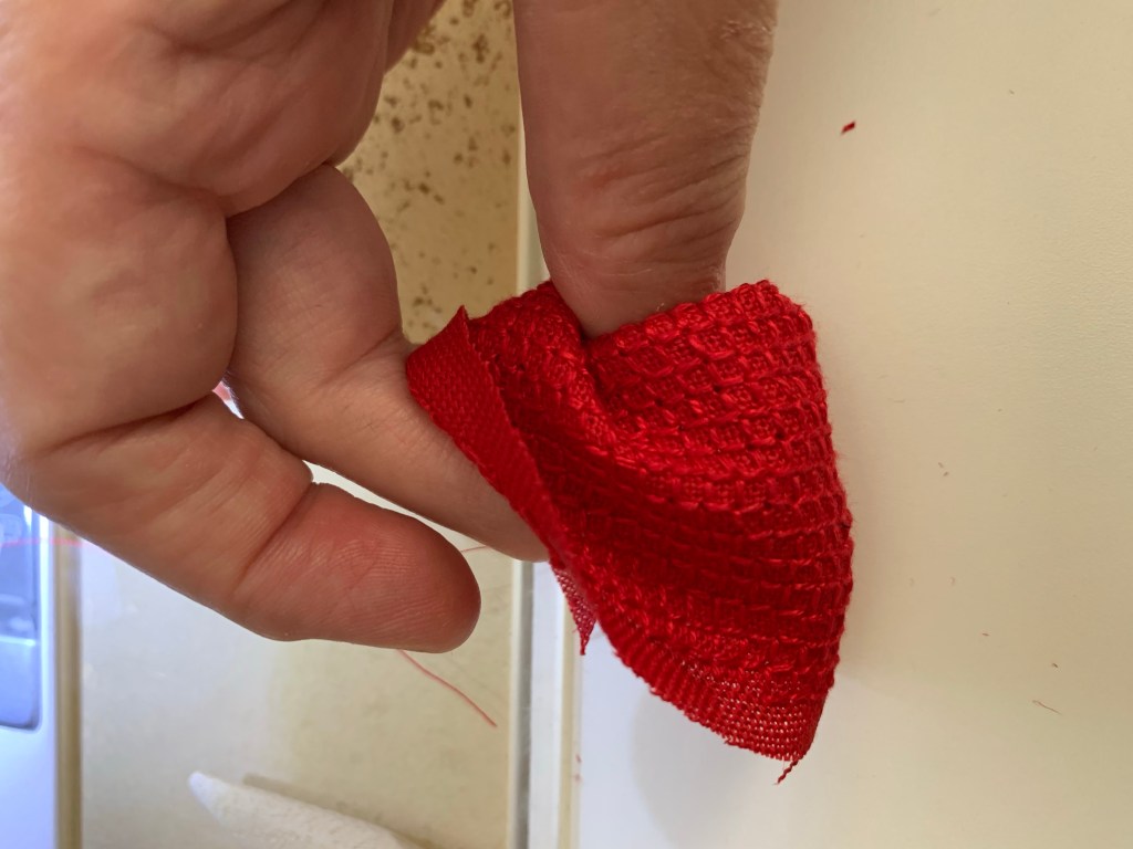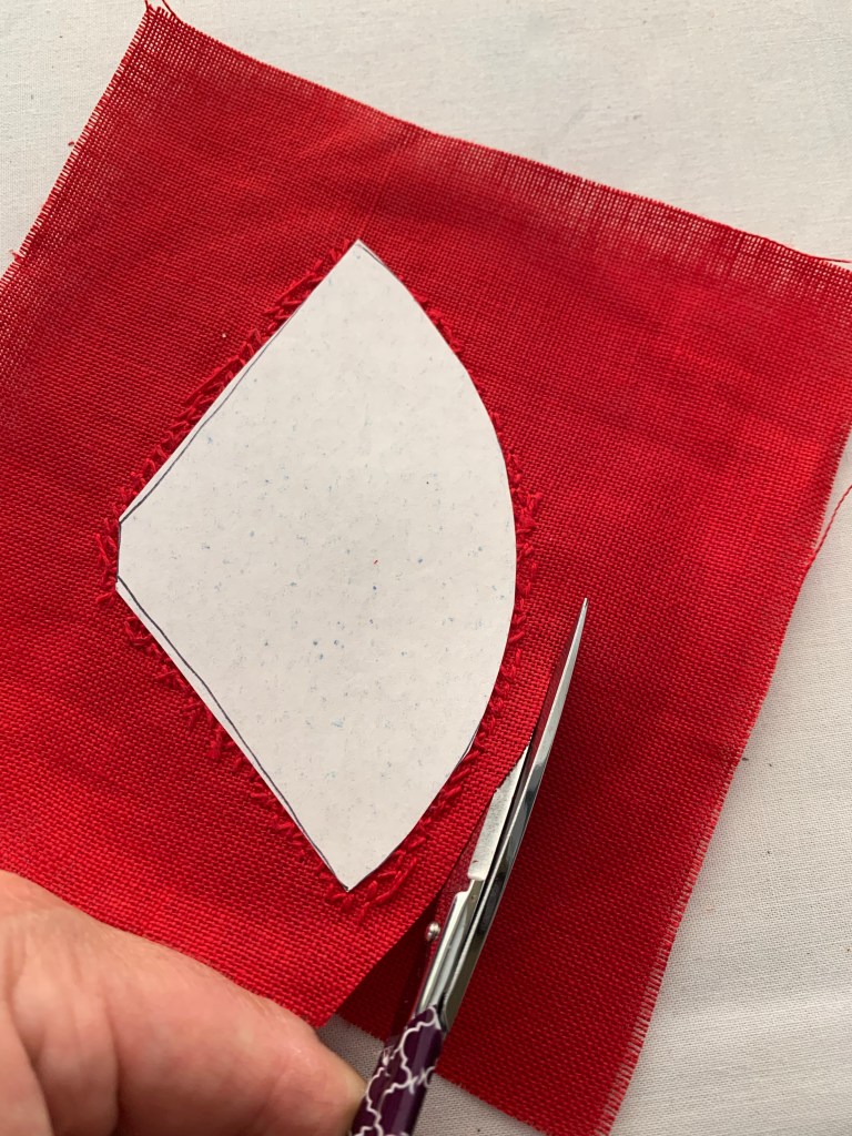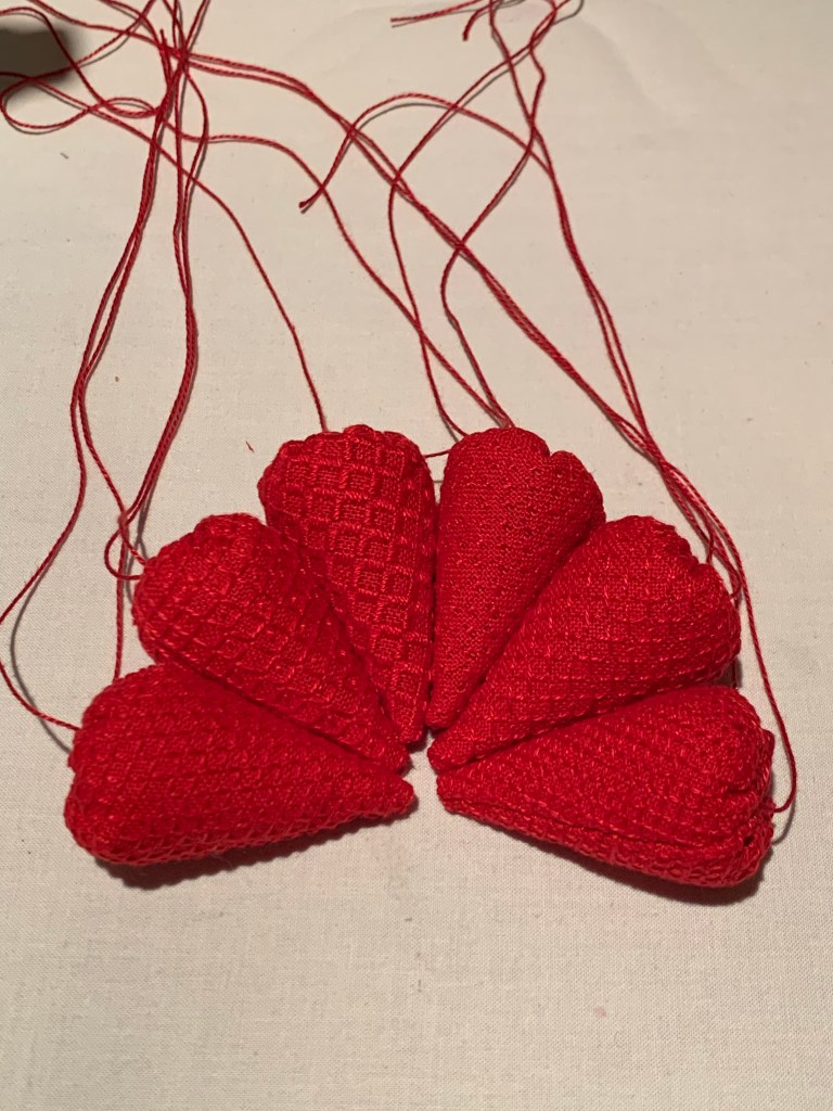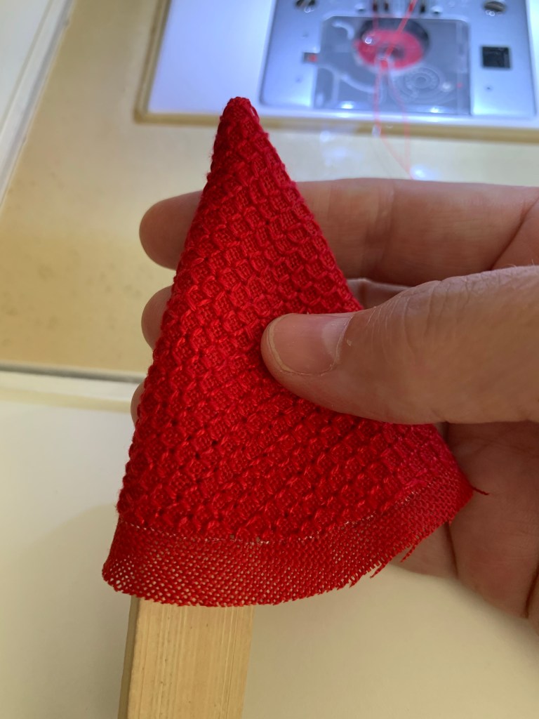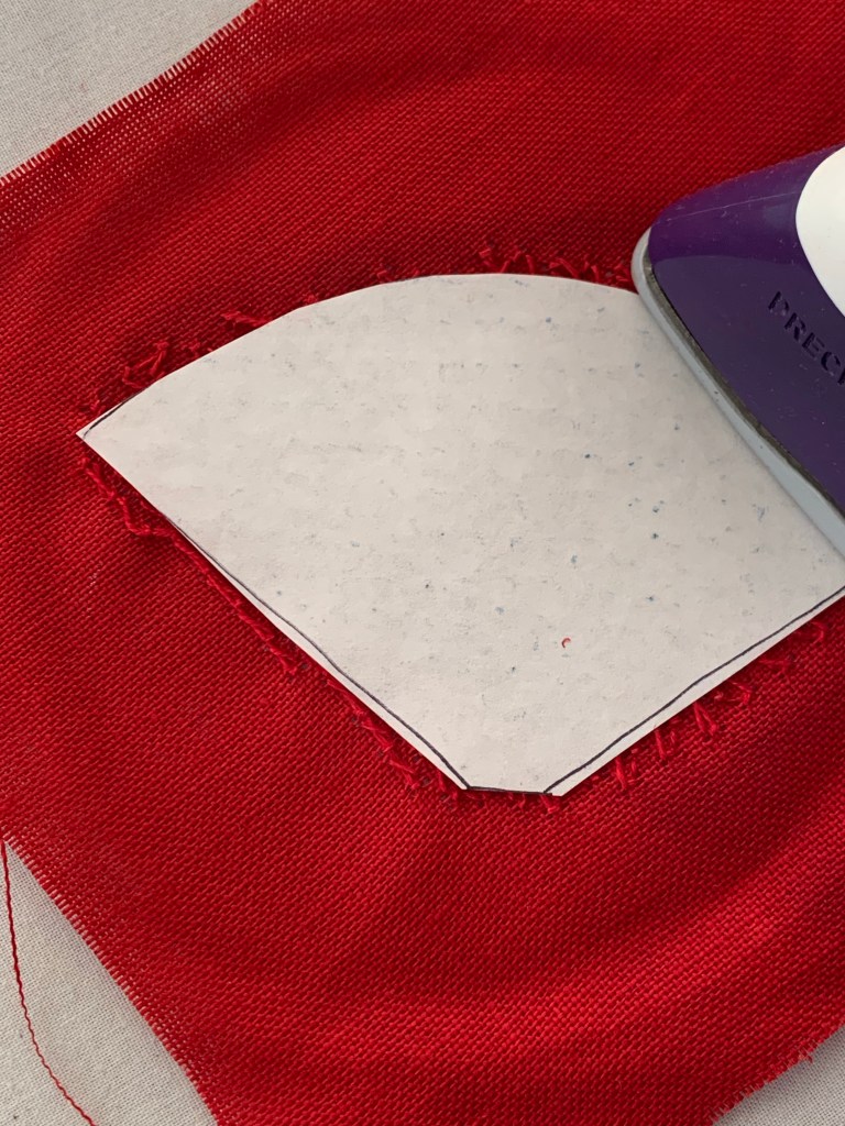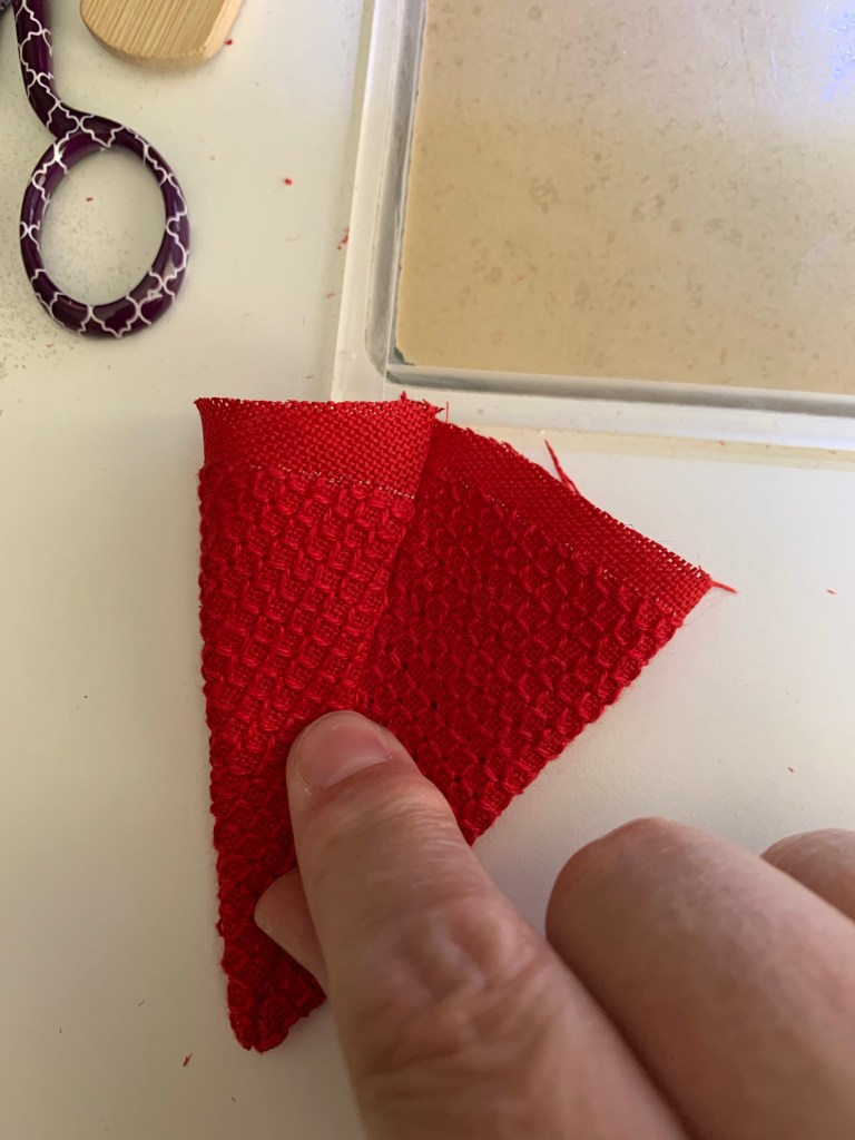 Find the template in your instructions. Trace it out onto a piece of freezer paper and cut out. Lay the freezer paper (waxy side down) onto the back side of the strawberry. Press gently with an iron (no steam) so that the freezer paper becomes affixed to the fabric. Using a sharp pair of scissor trim the fabric allowing a 1/4” to 1/2” seam allowance. I like a larger allowance to allow for some fraying of the fabric (especially linen). Gently remove the freezer paper from the back. I used the same piece of freezer paper for all of six of my strawberries.All done! I will tidy the edges after I sew wthe long edge together. NOTE: if you are worried about fraying along the top rounded edge, you could zig-zag the raw edge. With right sides together, match and sew the straight edges of the strawberry together using tiny stitches. Make sure you secure each end well. You can do this either on a sewing machine or by hand, using small straight stitches. Trim your edge Carefully turn the berry right side out.Using a chop stick or pointy tool, push out the tip of the strawberry. Be very careful as you go as it is very easy to polk through the linen. Looking good!!Finger press the seam so that it lays flat. Trim the top edge of the berry. All of the berries are ready to be filled. There are a few options to consider for filling the strawberry. I am experimenting with Poly- Pellets for this project. You can also use walnut shells or fibre fill. Using perle cotton in a matching colour, baste around the raw edge of the top of the strawberry. Your stitches should be on the smaller side (about 3-4 threads long).Make sure you finish within 1 or 2 threads from where you started. I started and ended my basting stitch near the seam. Pull the basting thread in a bit to start gathering the top. Leave the opening big enough for a funnel to fit. Using a funnel, add your filling. I filled my strawberries up about 3/4 with poly-pellets. To keep the pellets from escaping, I added a small bit of fibre fill on top of the pellets. Start pulling the threads. As you go, start tucking in the raw edges. Tuck in the raw edges as the home gets smaller. It requires a bit of fiddling to get this done. You may need to use a sharp tool to help tuck in the raw edges. Tie off the ends with a couple of good knots. All tied off!
