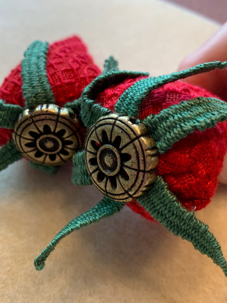 The emery strawberry project never got going so these lovely caps have been languishing until now! I was so happy to find them again and put them to good use.