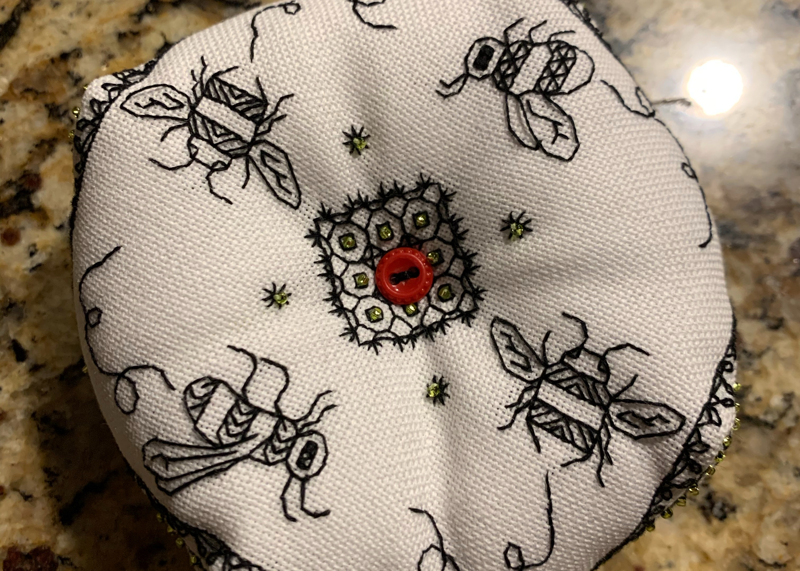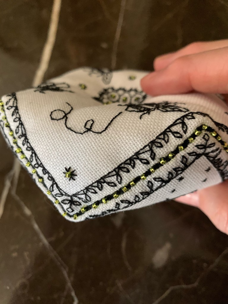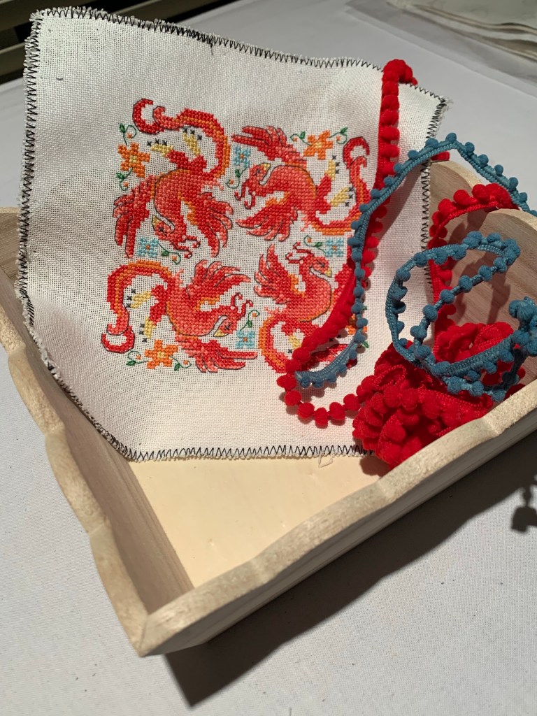 And lastly, this lovely Phoenix biscornu design by Tiny Modernist. I started this project with very good intentions on finishing as a biscornu. BUT…. stuff happens…. and now it’s a tray insert!