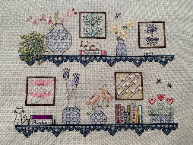 Happy New Year everyone! The last and final part of the Botanical Bookshelf is here – and the grand reveal is below! In this final part we will be filling in the books and adding additional elements to the shelf (cats, mice and flying creatures).