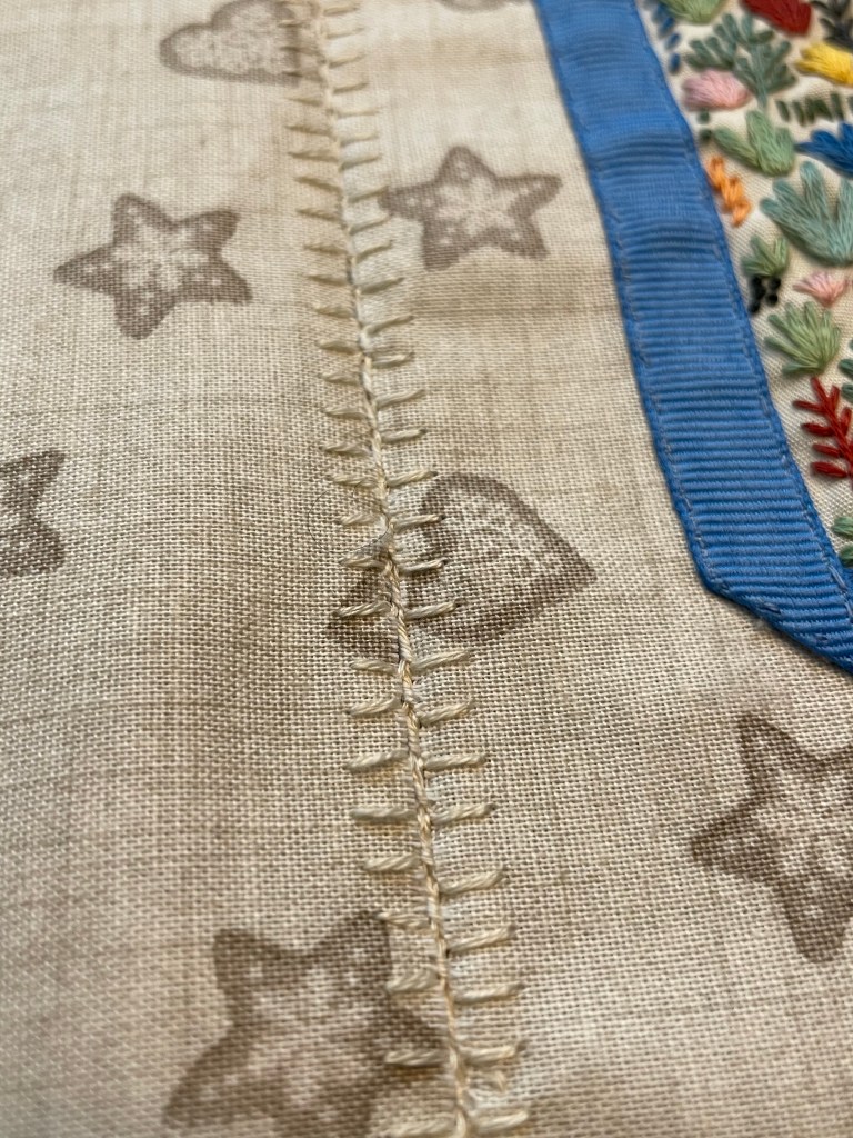 Over the past few weeks much stitching has been done while sipping the morning java – delicious coffee and a bright, sunny situation have made my mornings most enjoyable… and productive! I’ve managed to finish the layouts and edging on almost all of the pages for the journal!
